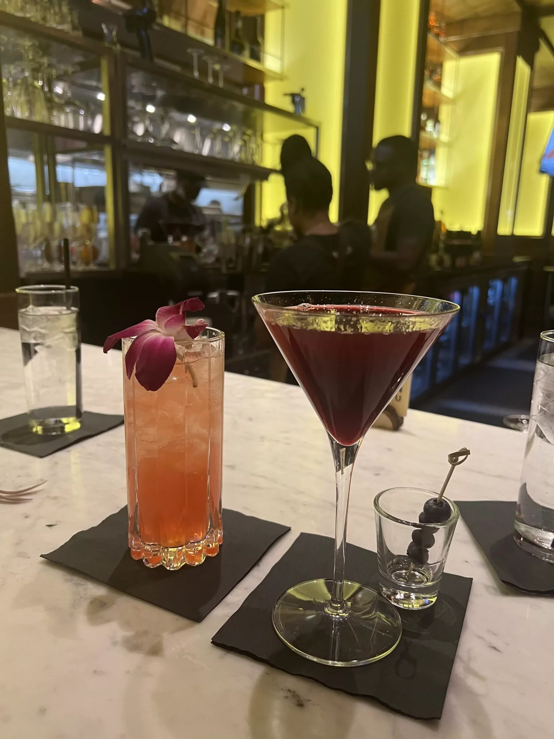 Must-trys: The Dusk Julep, Sweetest Thing, and Long Way Home craft cocktails