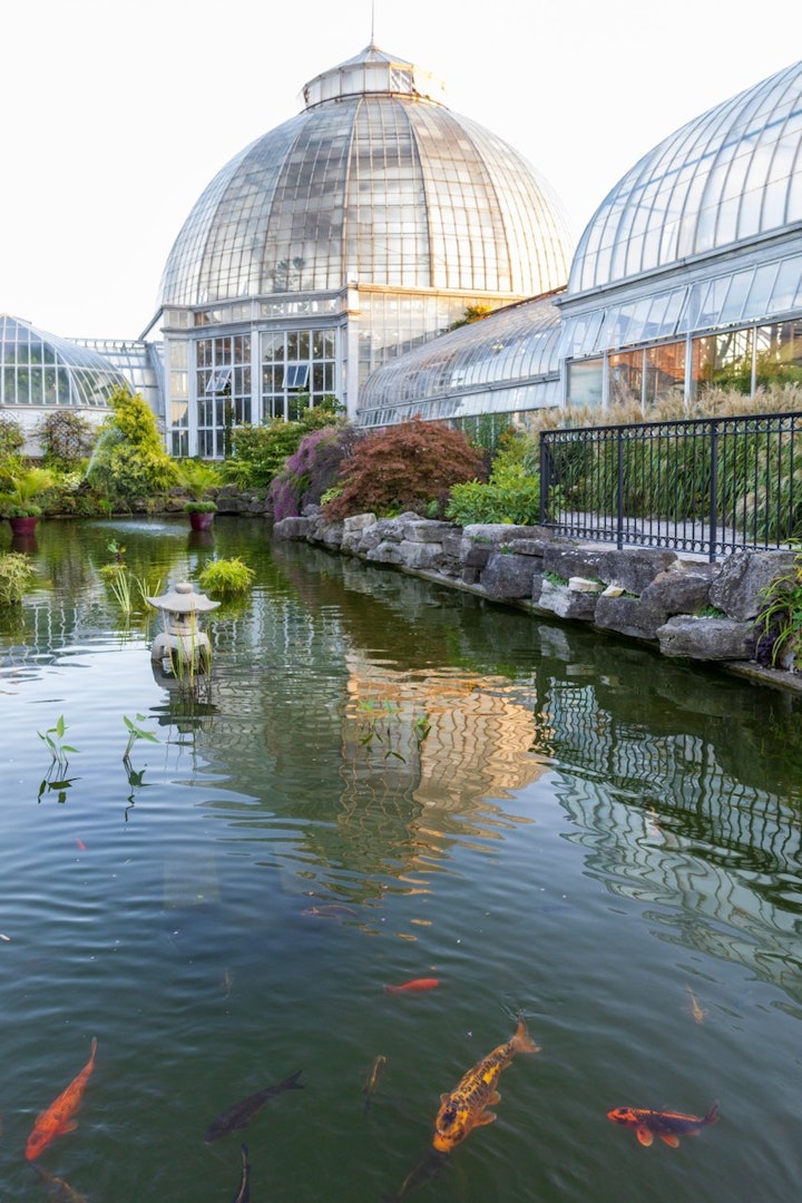 The Anna Scripps Whitcomb Conservatory, featuring a collection of exotic plants, is one of the most visited and recognizable historic structures in Belle Isle Park and one of the oldest in the United States. The two buildings, designed by Albert Kahn, opened Aug. 18, 1904. On April 6, 1955, the conservatory was dedicated to Anna Scripps Whitcomb, who donated her 600-plant orchid collection to the city of Detroit. The conservatory boasts 13 acres, a formal perennial garden, seasonal floral beds, a lily pond garden and five sections of flora.